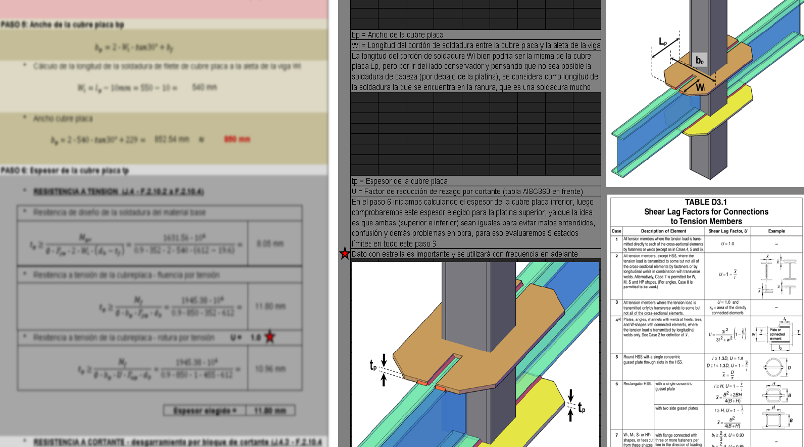 Acá encontrarás una expliación del formato de cálculo, también encontrarás el formato de excel modificable 100% en donde se desarrolla un ejemplo práctico, cuenta con ilustraciones en 2D y 3D para que sea más entendible, también con los comentarios propios y recomendaciones, también por supuesto la descripción de cada uno de los términos involucrados en las ecuaciones así como los numerales de la norma en donde se encuentran.